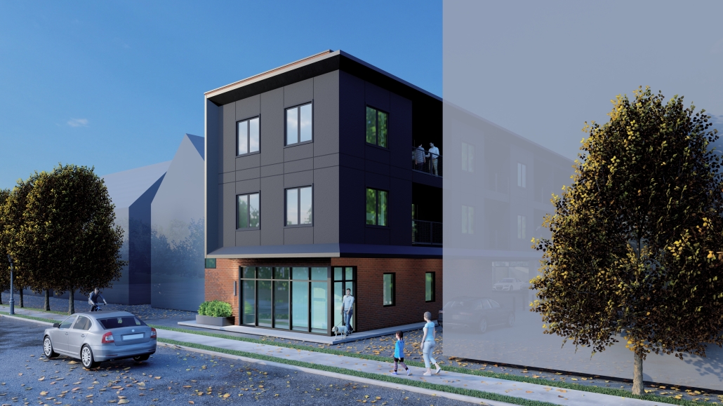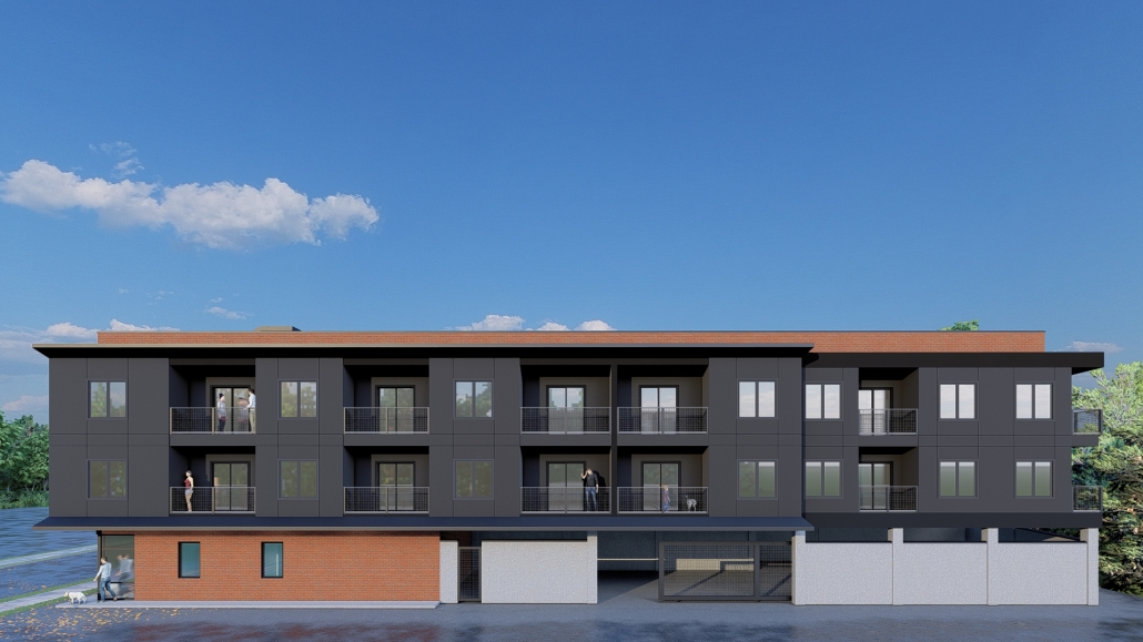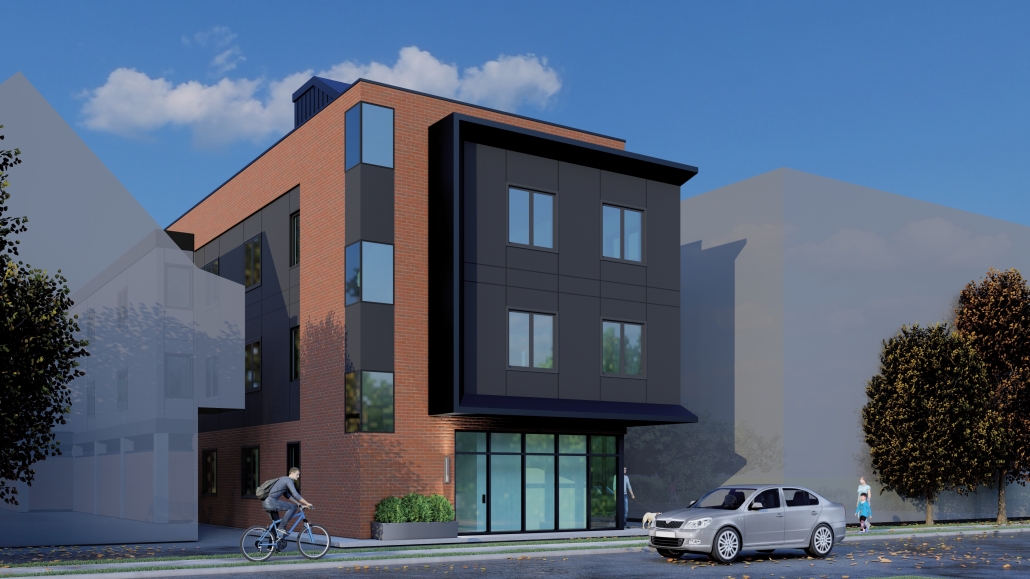 This three-story, 16-unit multi-family residential development is designed in a sleek contemporary architectural style. The new construction balances modern urban living with thoughtful design, offering efficient layouts and high-quality finishes. The building’s exterior features a clean, geometric composition with a refined mix of materials, including brick, stucco, and metal paneling, establishing a strong yet timeless visual identity.